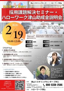 ⑤2/19(木) 採用課題解決セミナー・ハローワーク津山助成金説明会【津山リスキリングセンター】
