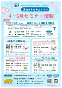 ①津山まちなかカレッジ 4~5月開催セミナー情報【津山まちなかカレッジ事務局/つやま産業支援センター】