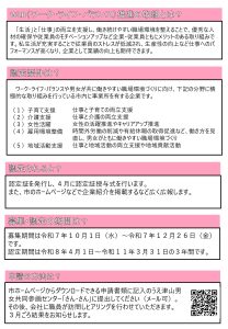 「津山市ワーク・ライフ・バランス推進企業」募集について【津山男女共同参画センター「さん・さん」】