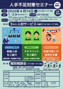 4/14(火) 「人手不足対策セミナー(人材サービス会社コラボ企画)」開催のお知らせ【T‐スタ】